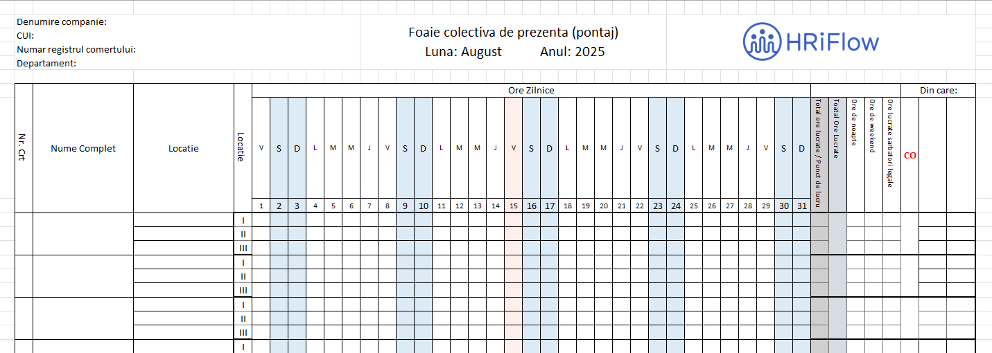 Încearcă modelul de pontaj pe locații pentru August 2025 și gestionează corect timpul de lucru al angajaților tăi!