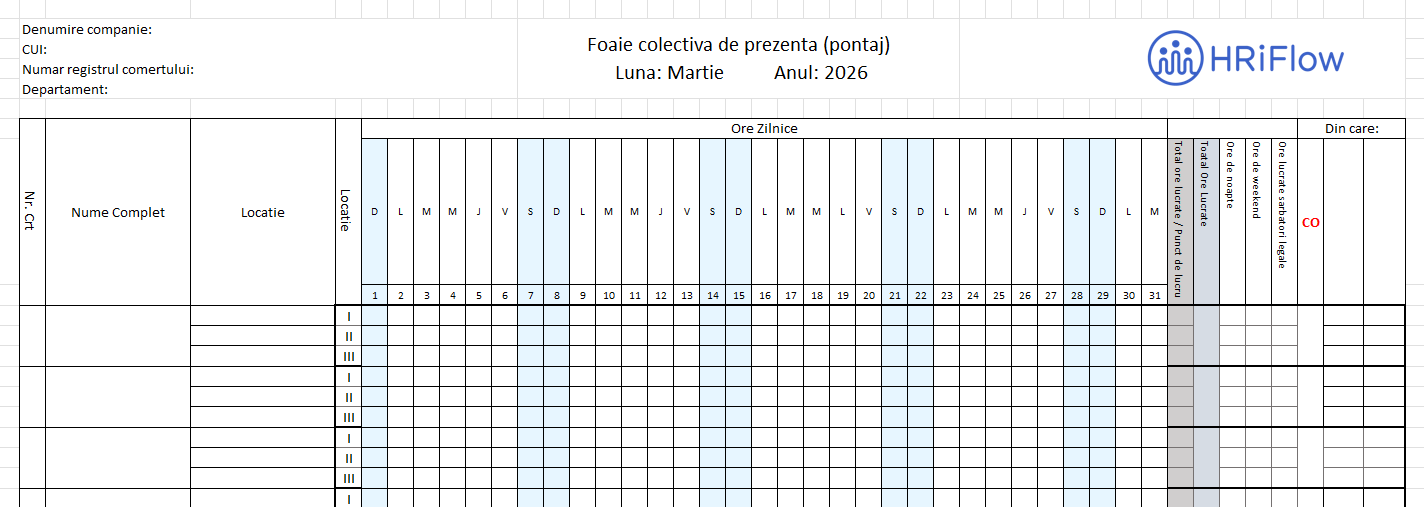 Încearcă modelul de pontaj pe locații pentru Martie 2026 și gestionează corect timpul de lucru al angajaților tăi!